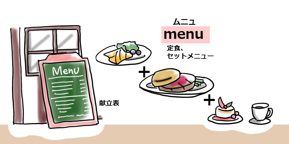 答えは「定食」「コース料理」と言った意味があります。ランチセットみたいなセットメニューのことですね。だいたい単品で頼むよりお得になります。