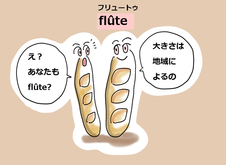 しかしflûte フリュートゥの大きさには地域差があり、地域によってはflûte フリュートゥの方がbaguette バゲットゥよりも太い場合もあります。このパンの大きさの規定についてはフランスでももめているようです…