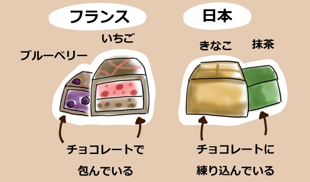 どう違うかと言うと「フランスではチョコレートに他のものをあまり練り込まない」という事です。