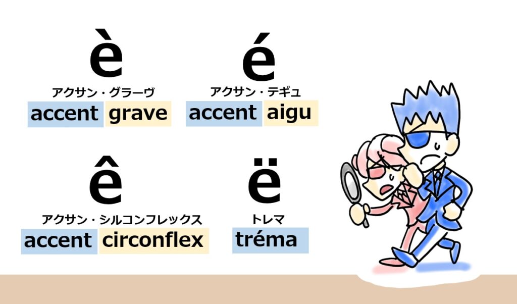 フランス語のアルファベットは基本的に英語のアルファベットと同じなのですが、「à」とか「ç」とか「ô」のように見慣れない記号がくっついている文字があります。