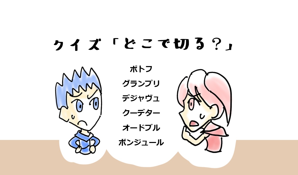 他にもこんな単語がたくさんあるので今回はクイズにしてみました。それらの単語がどこで切れるか予想してみましょう。