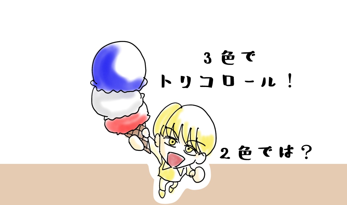 フランスの旗に使われている青、白、赤のことをtricoloreトリコロールと言いますね。でも別にその色に限らず3色であればtricoloreトリコロールと呼びます。