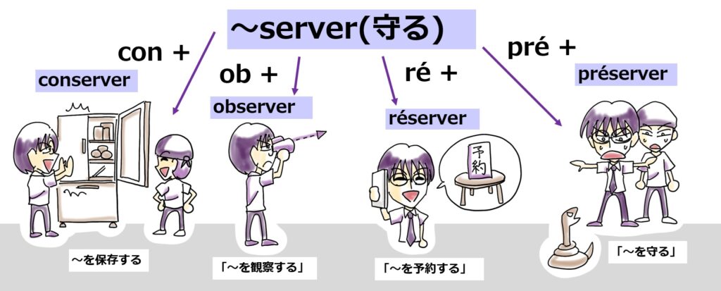 ●observer = ob + server (動詞)「~を観察する、~を見張る」