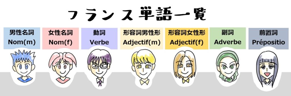 このサイトではフランス語単語の品詞を以下のように色分けしています。